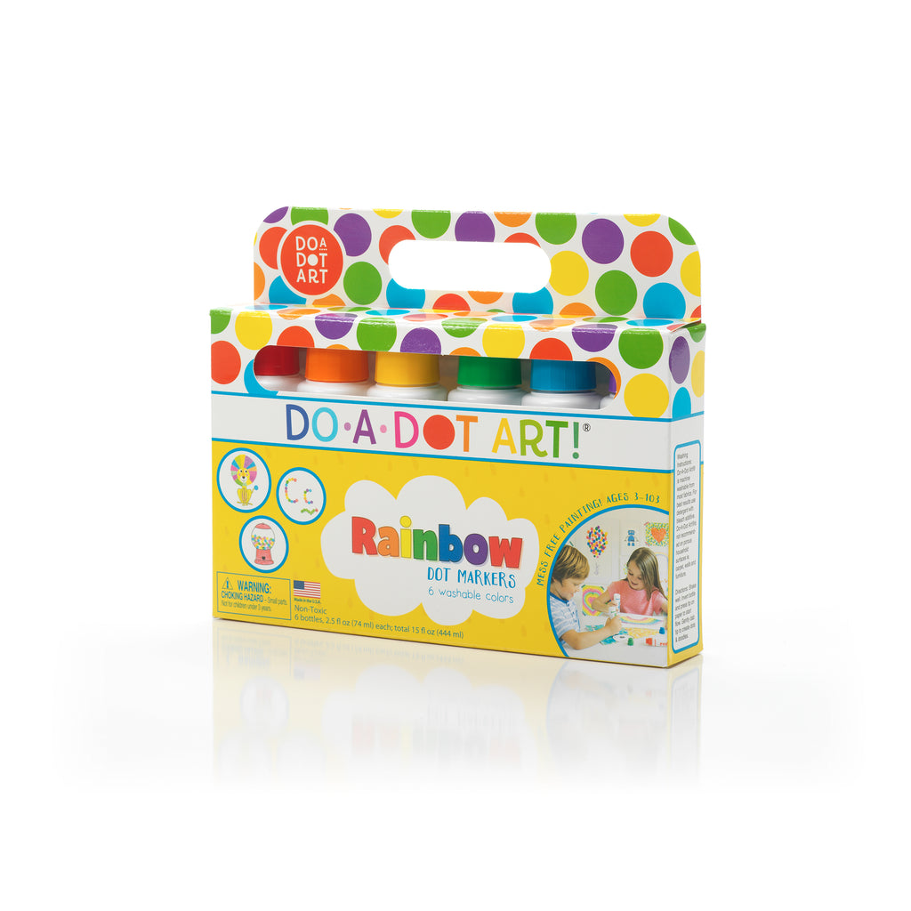 Explore what’s over the rainbow and dot away with Do A Dot Art! Rainbow Dot Markers. This classic set of bright, primary rainbow colors makes arts and crafts time easier, cleaner, and more fun for young artists.
